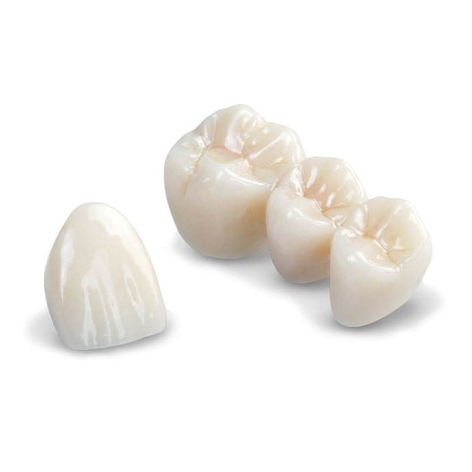 High-strength monolithic zirconia designed for posterior load, bruxism cases, and multi-unit bridges. Durable, stable, and engineered for long-term performance.